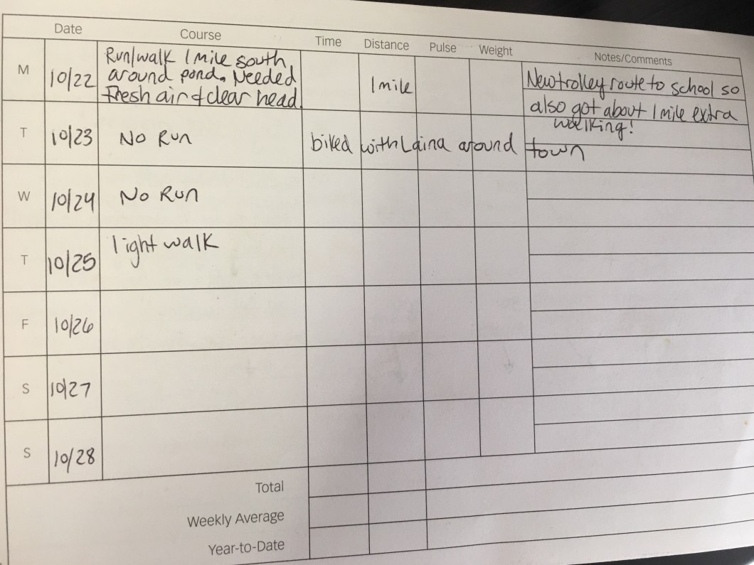 One month before this my son and husband surprised me with a running log for my birthday. I had not owned one since high school cross country. I loved it so much, and seeing their joy when they handed it to me was priceless.
