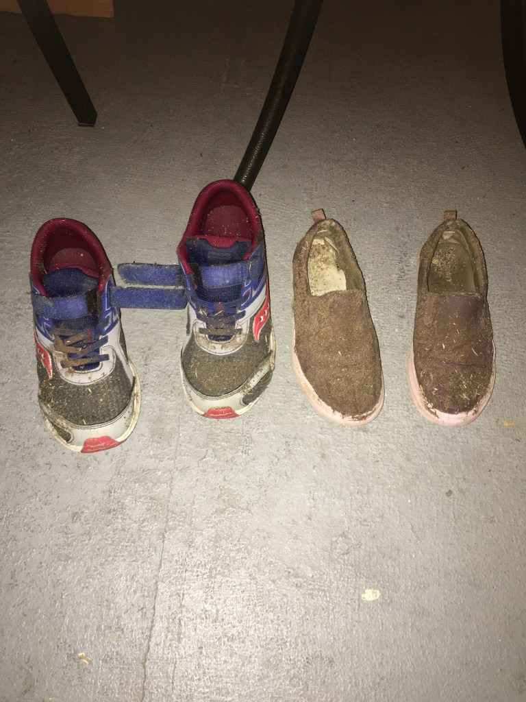 The shoes took a good three days to dry, and another couple to shake all the dirt and debris off.