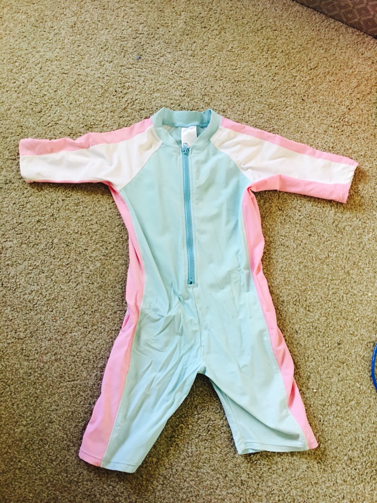 I asked her what was wrong and she replied, “This swimsuit doesn’t feel good!!” She growled and continued tugging and pulling at every inch of it in discomfort.