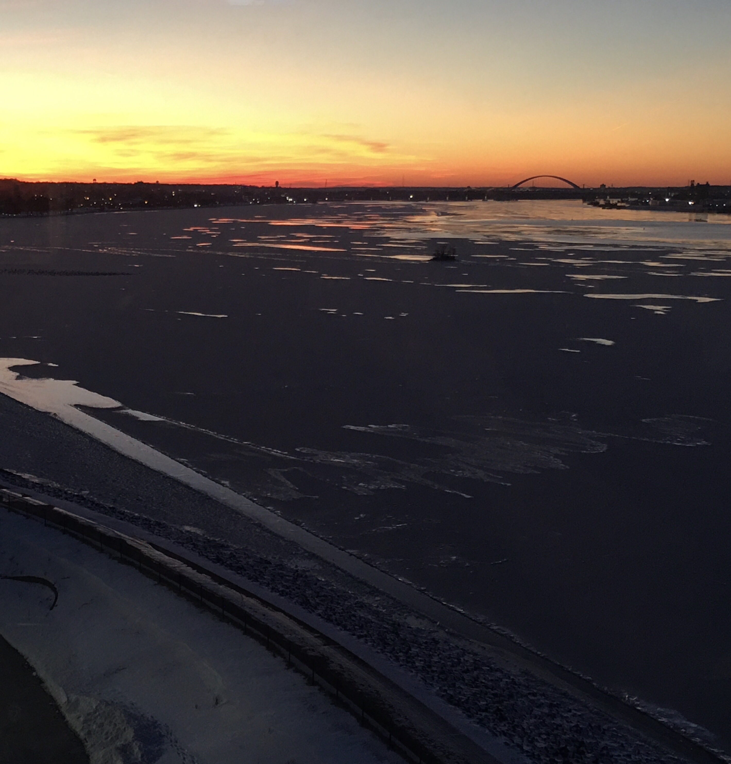 (Photo of winter sunset on Mississippi River in our hometown ❤️)
